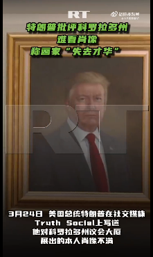 香港新聞網3月25日電 當地時間3月24日,美國總統特朗普在社交媒體“真實社交”上發文,對科羅拉多州議會大廈展示的他的肖像表達不滿。他要求該州州長賈里德·波利斯將這幅畫像撤下。