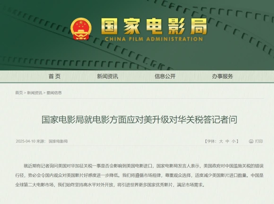 央視新聞報道,據悉,迪士尼的《頭腦特工隊2》是2024年全球票房最高的電影。該片全球票房收入約17億美元,其中約6.53億美元來自美國本土,4740萬美元來自中國。華納兄弟的《沙丘2》是2024年全球票房收入排名第七的電影,票房收入7.146億美元,其中美國本土票房收入2.821億美元,中國票房收入4900萬美元。 美國多個主要電影公司股價下跌 截至4月10日收盤,美國主要電影公司的股價表現如下: 華特迪士尼公司: 收於85.23美元,下跌6.21美元,跌幅6.79%。 康卡斯特公司: 收於33.68美元,下跌1.5美元,跌幅4.26%。 索尼集團公司: 收於22.92美元,下跌0.05美元,跌幅0.22%。 派拉蒙全球公司: 收於10.92美元,下跌0.22美元,跌幅1.97%。 奈飛公司: 收於921.17美元,下跌24.30美元,跌幅2.57%。 AMC娛樂控股公司: 收於2.92美元,上漲0.03美元,漲幅1.04%。 中國國家電影局就電影方面應對美升級對華關稅答記者問 中國國家電影局發言人10日表示,美國政府對中國濫施關稅的錯誤行徑,勢必會讓中國國內觀眾對美國影片好感度進一步降低,將遵循市場規律,尊重觀眾選擇,適度減少美國影片進口數量。中國是全球第二大電影市場,中方始終堅持高水平對外開放,將引進世界更多國家優秀影片,滿足市場需求。(完) 【編輯:石歡歡】