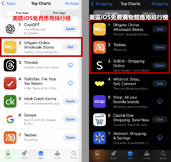 敦煌網2004年成立,是中國B2B跨境電商在線交易服務平台。截至4月15日,敦煌網在美國地區iOS免費應用程序排行榜中一路飈升到至第二名,僅次於ChatGPT。 根據統計,4月11日前,敦煌網還排名350開外,之後名次快速躍升,僅4月13日當日,該款APP在iOS平台下載量高達11.75萬次,較30日均值暴增732%。尤其美國市場下載量高達6.51萬次,激增940%。 目前,敦煌網與中國另外兩款電商應用淘寶(taobao)和希音(SHEIN)一同包攬美國地區購物類應用的榜單前三名。 敦煌網迅速崛起的現象引發關注。美國全國廣播公司新聞部(NBC)16日報道稱,特朗普揮舞“關稅大棒”是為了讓製造業回歸美國本土,但不斷升級的關稅戰正促使一些美國消費者“前所未有”地青睞中國商品。 一些美國人在網上表示,他們正在湧向中國製造業,而不是遠離中國。 當地時間4月10日,美國政府宣布對華徵收的145%的高額關稅,中方反制,對美加徵125%關稅。 美媒指出,敦煌網的爆紅與大量中國製造商從上周五(4月11日)以來,在TikTok發布兜售各種各樣商品的視頻有關。這些視頻主要是介紹大多數消費是如何在中國製造的,中國製造的商品與大牌產品質量相同的情況下,價格更便宜,并且以“打掉中間商,低價買大牌”來吸引消費者。
