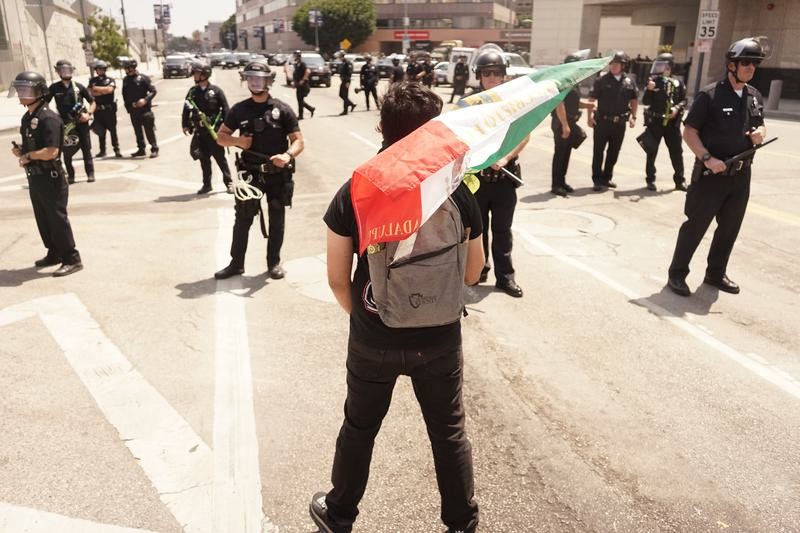 6月9日,在美國加利福尼亞州洛杉磯市中心,一名示威者與警察對峙。圖片來源:新華社 特朗普當日在白宮對記者表示,近日在洛杉磯參與抗議的人都是“職業煽動者”“叛亂分子”和“壞人”,應該坐牢,而紐森極不稱職,工作幹得很糟,應該被抓起來才對。 有記者提出紐森說總統有意挑起內戰,特朗普對此表示,“正相反,我不希望發生內戰,但大家任由像他(紐森)那樣的人行事,才會發生內戰”。 特朗普還說:“我喜歡他(紐森),之前我和他相處得很好,我們之間沒有問題,但他非常無能。” 此前,就特朗普下令調遣加州國民警衛隊進入洛杉磯地區,紐森指責特朗普表現得像個“獨裁者”。他對洛杉磯當地媒體說:“他不是為了建立和平。他是來打仗的。他想在美國街頭發動內戰,而不僅僅是在這里。” 連日來,加州抗議者與美國聯邦機構執法人員和當地警察持續發生大規模衝突。9日,加州起訴特朗普政府調遣國民警衛隊進入洛杉磯。特朗普稱如果需要,將向加州增派國民警衛隊。美國軍方將暫時向洛杉磯部署約700名海軍陸戰隊員,直至國民警衛隊抵達。 繼8日千餘名抗議者與國民警衛隊發生衝突之後,洛杉磯緊張氣氛持續升級。據悉,洛杉磯還可能有大規模抗議發生,而美國其他城市,如亞特蘭大、波士頓、夏洛特、芝加哥、丹佛、哈里斯堡、紐約、費城、匹茲堡、波特蘭、薩克拉門托、西雅圖等地,也都在醞釀抗議活動。洛杉磯警方9日發布的最新消息說,在自7日開始的洛杉磯大規模抗議活動中,警方已逮捕近70人。(完) 【編輯:林曉惠】