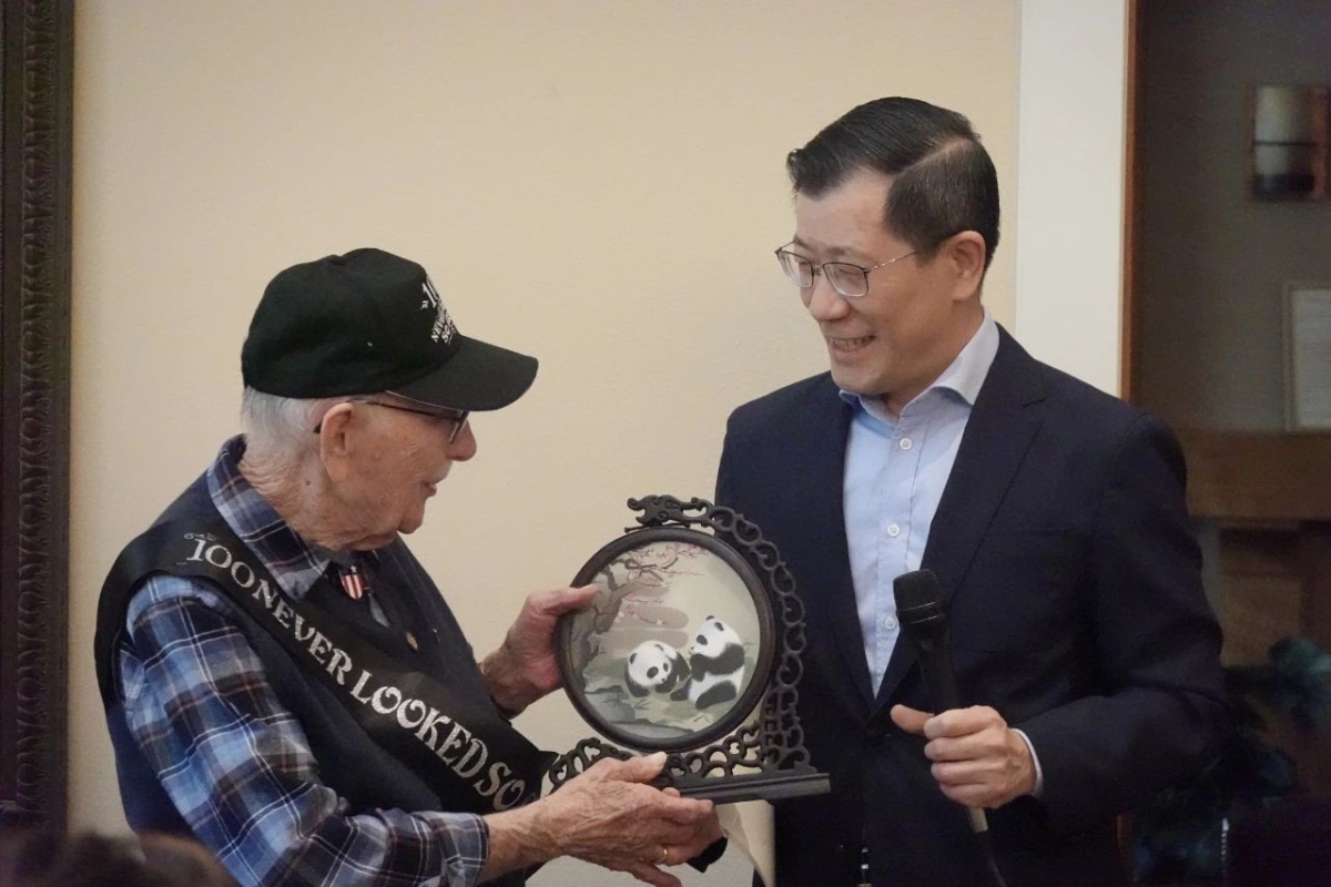 圖源:中國駐洛杉磯總領事館 中國駐洛杉磯總領事館12日消息,麥克馬倫在生日會上表示,我們尊重和欽佩中國人民。我永遠不會忘記,在抗戰期間,當地民眾不怕日軍殘酷報復,甚至付出生命代價全力救助美國飛行員。真誠希望美中兩國年輕一代繼續講好飛虎隊故事,傳承飛虎隊精神。 郭少春總領事夫婦,美國會眾議員趙美心、美中航空遺產基金會主席格林及麥克馬倫親屬友人等近百人參加生日會。