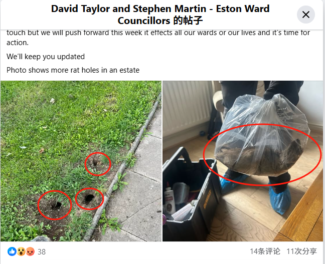 老鼠洞及56厘米長的巨型老鼠。泰勒和馬丁社交媒體截圖。 這隻巨鼠是在諾曼比一處民居內被滅鼠人員發現,據信是有記錄以來英國最大的老鼠之一,超越2018年在伯恩茅斯發現的21英吋(53厘米)巨鼠。泰勒表示,該老鼠體型“幾乎與小貓相當”,並非個別現象,反映當地鼠患問題日益嚴重。他指出,埃斯頓和鯨魚山部分地區的公共垃圾箱長期堆滿垃圾,尤其是外賣店隨意傾倒食物殘渣,為老鼠提供了“方便的食物來源”。此外,公共土地上雜草叢生,也為老鼠提供了藏身之處。 泰勒和馬丁呼籲市議會對全區進行全面鼠患勘測,並制定治理計劃。他們要求與企業、房東及社會住房提供者合作,確保滅鼠措施納入租賃責任。他們在社交媒體上表示,儘管鼠患問題已成為全國頭條新聞,但工黨主導的市議會尚未採取實質行動,僅提供電話諮詢建議,私人住宅的滅鼠費用需居民自費承擔,這對經濟拮据的居民構成負擔。兩人警告,若不採取緊急行動,鼠患將繼續惡化,威脅公共衛生。 雷德卡-克利夫蘭市議會回應稱,議會設有專職滅鼠人員負責處理公有土地的鼠患問題,但已停止為私人住宅提供免費滅鼠服務。發言人表示,議會正與當地住房機構及水務公司合作,探索解決方案,並在網站上提供防治建議。 鼠患問題並非北約克郡獨有。據英國《太陽報》報道,英國多地近年來鼠患投訴增加,與垃圾堆積及公共滅鼠經費削減有關。2022年,英格蘭一名老人在自家院子捕獲一隻18英吋(約46厘米)的巨鼠,當時已引發廣泛關注。專家指出,老鼠繁殖力強,平均一隻雌鼠每年可產下多達60隻幼鼠,且能傳播多種疾病,如鉤端螺旋體病和漢他病毒,對公共健康構成威脅。 泰勒強調,當地居民對鼠患問題反應強烈,社交媒體討論熱烈,顯示公眾對議會處理不力的不滿。他呼籲政府、議會及相關機構共同制定全面滅鼠策略,防止問題進一步惡化。隨著巨鼠事件持續發酵,雷德卡-克利夫蘭的鼠患治理進展備受關注。(完) 【編輯:關秀英】