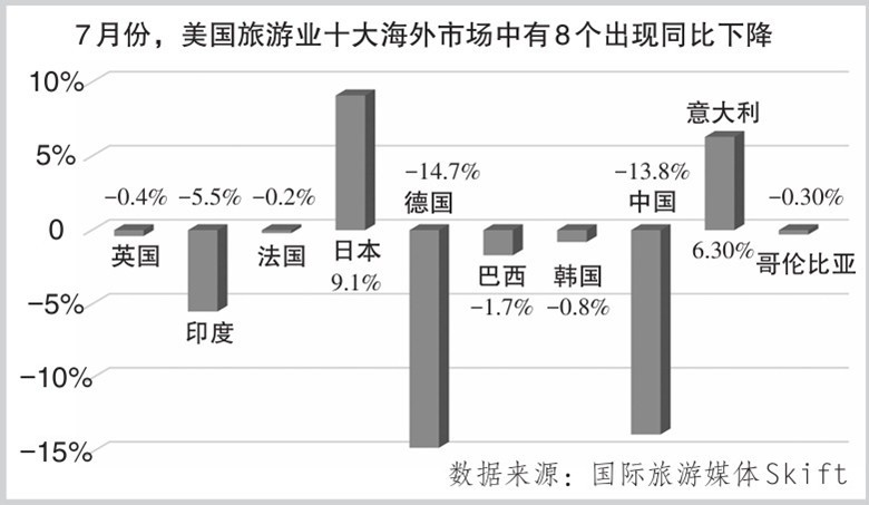 貿易戰等影響形成“寒蟬效應” 美國旅遊業損失慘重香港新聞網8月20日電 “今夏外國遊客紛紛繞開美國”,據彭博社18日報道稱。受美國發起貿易戰、更嚴格的邊境管控和全球經濟不確定性的影響形成的“寒蟬效應”,正在令眾多國際遊客選擇放棄前往美國旅行。為此,諸多美國旅遊商也不得不面巨額損失風險。據美媒報道,美國著名的不夜城拉斯維加斯今年罕見地空曠;而數據顯示,拉斯維加斯今年上半年遊客數量下降了7.3%,減少了150萬人次!