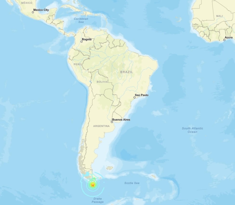 南美洲南極洲間德雷克海峽發生7.6級地震分享到: