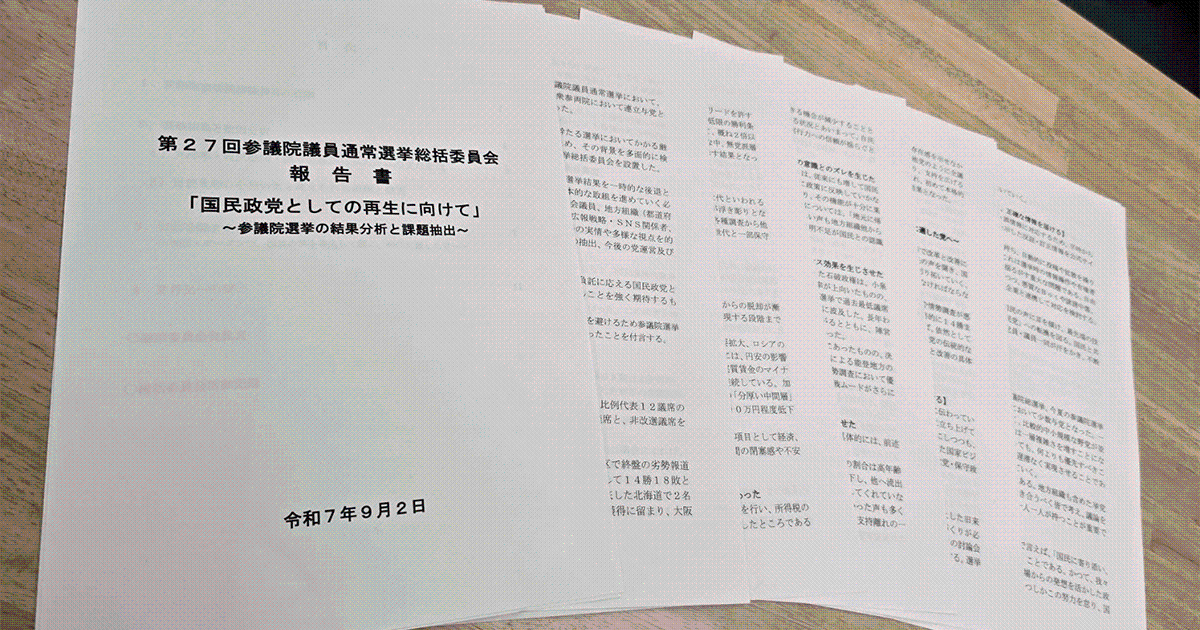 自民黨出具的7月參議院選舉大敗的分析報告書(圖源:日本自民黨官網) 自民黨總裁是自民黨的黨首。幹事長、總務會長、政務調查會長三個職位是僅次於總裁的重要職位,也稱為“黨三役”。 自民黨在7月舉行的參議院選舉大敗,森山在會上稱需要為選舉失利負責,因此向黨總裁兼首相石破茂提出辭職,交由對方決定去留。鈴木俊一及小野寺五典也以同樣理由向石破茂請辭。 森山在會後的記者會上提到參院選舉時直言:“沒能達到原定的目標…而選舉的負責人是身為幹事長的我”,並宣布有意辭職。 小野寺告訴媒體:“我身為政策負責人之一,也認為應對選舉結果負起責任。” 自民黨2日舉行參眾兩院議員總會,討論由森山領導的委員會撰寫調查敗選分析報告,內容提到自民黨需要“重新開始”。 消息人士稱,報告提到在責任問題上主要歸咎於黨內的政治獻金醜聞,以及選前提出每人發放2萬日圓應對物價上漲的措施惹來選民不滿,再加上該黨參議院預算委員長因能登地震失言,打擊選情。 不過,報告似乎沒將矛頭指向石破茂,他當日在會上再就選情失利表示負責,強調不會逃避。石破茂稱自己無意抓住權力不放,對於是否引咎辭職,將在“合適的時間認真做出決定”。 石破茂的總裁任期原本應到2027年。據日媒報道,當天總會後,該黨總裁選舉管理委員會計劃向相關國會議員及地方支部聯合會發通知,就是否提前舉行總裁選舉確認意向。根據自民黨相關規定,如果該黨多數議員和各地區分支機構同意,可提前舉行總裁選舉。(完) 【編輯:淩玉輝】