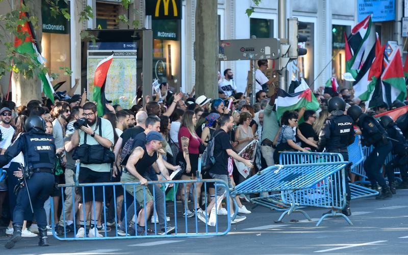 9月14日,在西班牙首都馬德里,警察與示威者發生衝突。圖片來源:新華社 據當地媒體報道,示威者抗議以色列博泰車隊參加這一賽事。這項為期三周的賽事自8月23日開賽以來,多個賽段已因示威活動而縮短。14日,數萬名示威者走上街頭,佔領馬德里主要街道,迫使主辦方縮短最終賽段。 桑切斯當天就此表示,西班牙是“國際社會的榜樣,國際社會看到西班牙在捍衛人權方面前進了一步”。 桑切斯的言論引發以色列強烈不滿。14日,以色列外交部長吉德翁·薩爾在社交媒體平台發文稱桑切斯及西政府令國家“蒙羞”,指責桑切斯煽動示威者走上街頭,導致這項“一直讓西班牙引以為傲的比賽中斷”。 西班牙多次批評以方軍事行動,並於2024年5月與挪威、愛爾蘭一起宣布承認巴勒斯坦國。同年6月,西班牙加入南非政府在聯合國國際法院對以色列提起的“種族滅絕”訴訟。本月8日,西班牙宣布對以色列武器禁運等多項措施,以色列則於當日禁止西班牙官員入境。隨後,西班牙召回駐以大使以示抗議。 環西班牙自行車賽為全球三大自行車賽之一,其提前結束引發國際關注。示威組織者表示,抗議旨在譴責以色列軍事行動,並呼籲國際社會加大對以色列壓力。聯合國人權理事會定於9月16日召開緊急會議,討論以色列對卡塔爾的空襲事件。(完) 【編輯:林曉惠】
