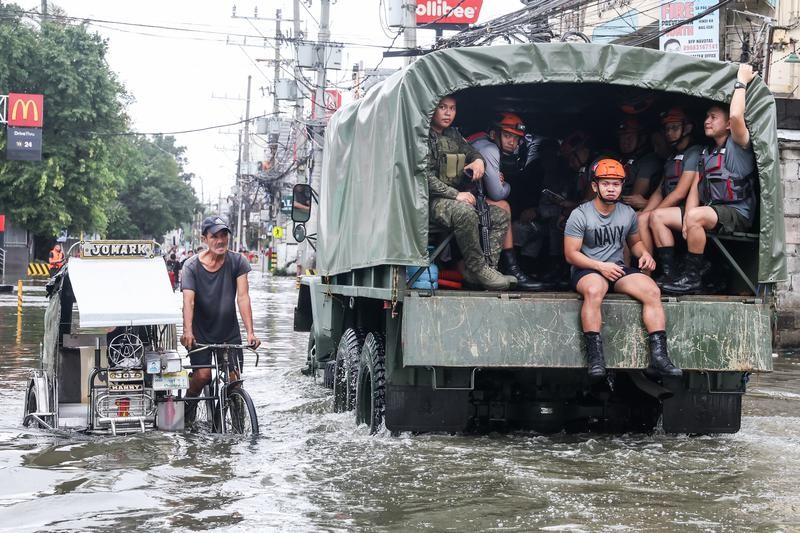 11月10日,在菲律賓納沃塔斯市,用於轉移民眾的卡車行駛在道路積水中。圖片來源:新華社 據菲民防辦公室11日通報,超級颱風“鳳凰”9日晚登陸呂宋島,目前已造成至少18人死亡。 菲減災委同日發布的數據顯示,4日凌晨登陸菲律賓的颱風“海鷗”已造成至少232人死亡,另有112人失蹤。“海鷗”已於6日凌晨離開菲律賓。 另據菲律賓媒體報道,這兩場颱風造成大範圍破壞,摧毀了房屋、農田以及一些重要基礎設施。兩場颱風累計影響17個省份、超400萬人口,80萬人被轉移至臨時避難所,但仍有大量民眾因道路中斷無法撤離。菲社會福利部啟動“國家災害響應基金”,發放食品、帳篷等物資,但缺口顯著——呂宋島北部需5萬頂帳篷,目前僅到位1.2萬頂。 菲律賓年均遭遇20次颱風,但“雙連擊”仍屬罕見。專家指出,全球變暖加劇颱風強度,加之部分地區森林砍伐、海平面上升,災害風險攀升。(完) 【編輯:林曉惠】