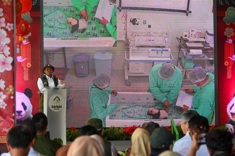 1月6日,在印尼西爪哇省茂物野生動物園,印尼林業部長拉賈·朱利·安東尼向觀眾介紹大熊貓幼仔“里奧”。圖片來源:新華社 當天,印尼政府在茂物野生動物園舉行“新出生大熊貓幼仔媒體發布會”。印尼林業部長拉賈·朱利·安東尼介紹,這隻雄性大熊貓幼仔於2025年11月27日17時出生,目前健康狀況良好。印尼政府選擇在幼仔出生滿40天之際向社會公布這一喜訊,既寓意吉祥,也符合當地文化傳統。 據悉,相關繁育工作在中國與印尼科研團隊密切合作下完成,採用了輔助生殖技術。在茂物野生動物園,現場來賓通過視頻了解大熊貓幼仔出生以來的健康檢查情況。截至目前,其體重已明顯增長,生長發育狀況良好。 印尼總統普拉博沃為這隻大熊貓寶寶取名“里奧”,在印尼語中寓意“勇敢、高贵、品德高尚的骑士”。 中國駐印尼大使王魯彤應邀出席活動並致辭。他表示,大熊貓“湖春”順利產下幼仔,得益於中印尼雙方專家團隊的共同努力,以及印尼方面的悉心照料。幼仔的誕生是兩國深厚友誼的象徵,也是雙方在生物多樣性保護領域合作的成功範例。 大熊貓“彩陶”和“湖春”於2017年9月抵達印尼。自旅居印尼以來,兩隻大熊貓深受當地民眾喜愛。(完) 【編輯:石歡歡】