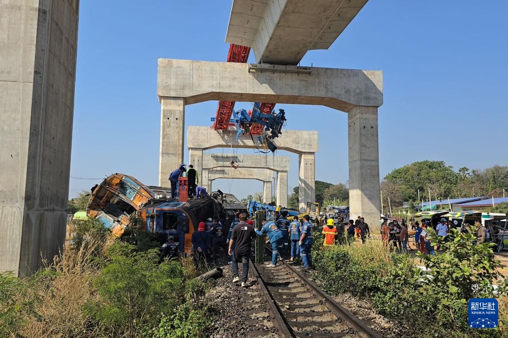 這是1月14日在泰國呵叻府拍攝的事故現場(手機照片)。新華社發 據報道,事發時,一台在離地約10米的高架結構上作業的起重機突然倒塌並墜落,其鋼結構砸中一列高速駛過的曼谷至烏汶府快速列車,造成列車脫軌並起火。泰國看守政府總理阿努廷已指示交通部長立即前往事故現場,處理追責及賠償事宜。 據泰國媒體報道,涉事標段主承包商為意大利-泰國發展公共有限公司。中國駐泰國大使館確認,事發標段無中方施工企業和施工人員參與。當地警方稱,事故中暫無中國人傷亡報告。(完) 【編輯:淩玉輝】