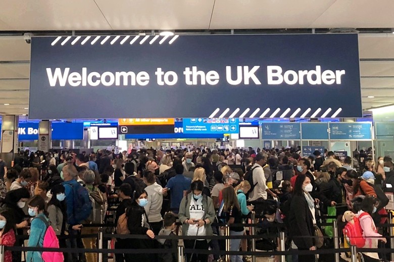 圖為旅客在英國倫敦國際機場等候入境。央視新聞資料圖