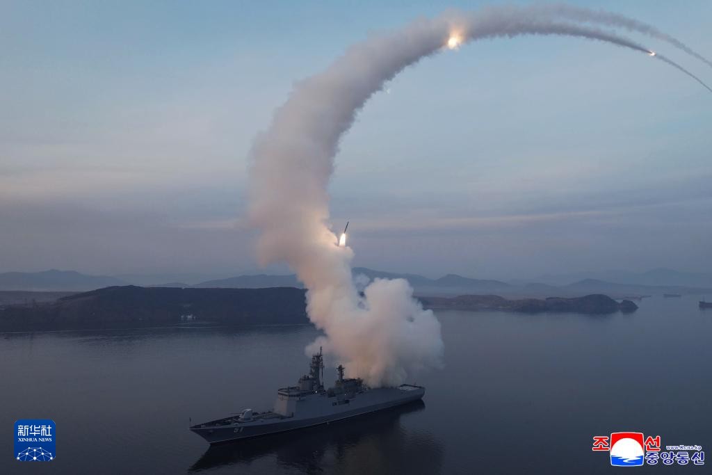 這是朝中社提供的“崔賢”號驅逐艦進行戰略巡航導彈試射的現場圖片。新華社/朝中社圖片 據報道,試射過程是向“崔賢”號驅逐艦傳送打擊目標數據,按照相關程序批准發射,“崔賢”號隨後針對幾個目標同時進行了戰略巡航導彈發射。數枚巡航導彈沿著在朝鮮西海上設定的軌道,分別飛行10116秒至10138秒,擊中了個別島嶼目標。 金正恩指示,從軍事方面的現實要求和發展角度,按照朝鮮的方式重新審議今後將建造的驅逐艦武器系統組成。 他表示,今後,艦上自動炮只在3000噸級以下的高速機動型艦艇上裝備,5000噸級和8000噸級驅逐艦不設艦上自動炮,而在其空間追加布置超音速武器系統,從而根據艦艇作戰運用特點提高艦對艦及戰略攻擊能力。 金正恩指,維持並擴大強有力而可靠的核戰爭遏制力,是非常重要的戰略課題。 他提出了加速增強朝鮮海軍作戰能力的一系列重要任務,包括完成艦艇機動要素和其他武器系統即防空、反潛、水雷武器系統的運用能力評估,在預定期限內將艦艇移交給海軍;加快推進以今年朝鮮勞動黨建黨紀念日(10月10日)為目標的另一艘驅逐艦建造工作;充實並新建海軍基地基礎設施等。 朝中社3月5日曾報道,金正恩3日和4日訪問“崔賢”號驅逐艦,4日在“崔賢”號上觀摩了艦對地戰略巡航導彈試射。 公開資料顯示,“崔賢”號是朝鮮首艘5000噸級新型驅逐艦,去年4月25日下水,即將正式服役。(完) 【編輯:林曉惠】