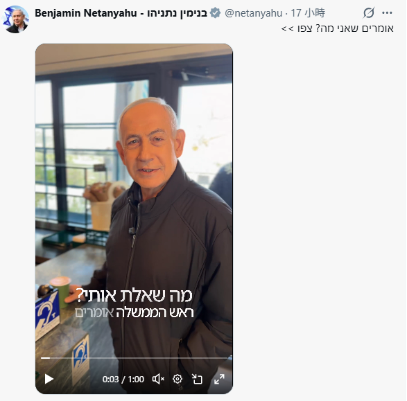 香港中通社3月16日電 當地時間15日,以色列總理內塔尼亞胡在社交媒體上發布一段視頻,以回應有關他個人狀況的網絡傳言,證明其本人仍健在。