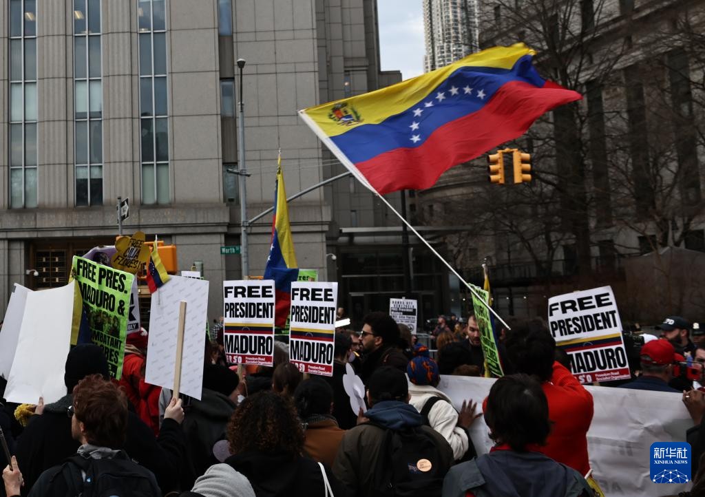 3月26日,馬杜羅支持者在美國紐約南區聯邦地區法院外集會抗議。新華社發(周煥新攝) 美國1月3日對委內瑞拉發動大規模襲擊,強行控制馬杜羅夫婦并將他們帶到美國。同月5日,馬杜羅夫婦在紐約南區聯邦地區法院首次出庭,拒絕美方所謂“犯罪”指控。國際社會普遍譴責美國嚴重侵犯委內瑞拉主權,威脅拉美地區和平穩定。(完) 【編輯:張麗欣】