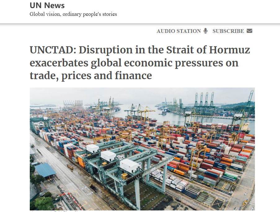 圖源:聯合國網站。 能源價格上漲 推高通脹壓力 聯合國貿易和發展會議報告顯示,作為全球能源貿易關鍵通道的霍爾木茲海峽活動近乎停滯,船舶過境量從2月每日約130艘降至3月僅6艘,降幅約95%。這一中斷正在衝擊全球大部分石油和天然氣供應,并影響生產、貿易和消費,同時波及海運、航空貨運和港口物流等運輸系統。 報告指出,自2月28日局勢升級以來,燃料價格大幅上漲并維持高位,石油運輸成本顯著增加。這些成本正通過供應鏈傳導,推高全球商品生產和運輸成本。石油和液化天然氣運輸受衝擊最為嚴重,而集裝箱和干散貨運輸雖受影響較小,但仍面臨成本上升和運輸中斷。 如果中斷持續,能源基礎設施受損可能導致價格長期維持高位,從而延長通脹壓力。對中東能源依賴較高的地區面臨更大風險。 金融壓力加劇 發展中國家受到最大衝擊 報告預計,全球商品貿易增長將從2025年的約4.7%放緩至2026年的1.5%至2.5%。全球經濟增長率預計將從2025年的2.9%降至2026年的2.6%。 報告指出,供應衝擊在推高價格的同時抑制需求,不確定性上升進一步削弱投資和貿易。隨著不確定性上升,投資者正在將資產從發展中國家撤出,導致貨幣貶值并推高借貸成本。發展中國家進口成本上升,同時融資難度加大。能源、糧食和化肥價格上漲叠加外部需求疲軟,進一步加劇壓力。約34億人生活在債務支出超過衛生或教育支出的國家,使這些經濟體難以應對新的衝擊。 報告指出,能源供應中斷、價格上漲、貿易放緩和金融環境收緊共同構成全球經濟壓力。若中斷持續,可能引發更廣泛的連鎖危機,并對發展產生深遠影響。 (完) 【編輯:錢林霞】