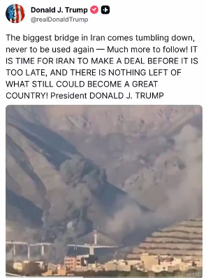 特朗普在社交媒體發布“炸僑”視頻 襲擊發生後,美國總統特朗普在社交媒體發布視頻,稱空襲炸毀伊朗“最大橋樑”,是為了施壓伊朗與美國“達成協議”。稍晚,他再次威脅稱,美國軍隊“還沒有開始摧毀伊朗剩下的東西”,接下來將打擊伊朗的橋樑和發電廠。 對此,伊朗外長阿拉格齊回應說,破壞民用設施不會迫使伊朗投降,這種行徑只能表明“處於混亂狀態的敵人”的失敗和士氣崩潰。他強調,每一座被毀的橋樑和建築都會得到重建,且“更加堅固”,而“美國的地位受損”這一既成事實將不可逆轉。 另據新華社報道,在美以對伊朗基礎設施發動襲擊後,伊朗媒體列出伊方可能在中東地區實施反擊的目標。 伊朗法爾斯通訊社報道說,美以在地區的交通網絡是“致命弱點”,伊朗可能對此發起反擊。報道列出多條美以軍事裝備運輸的鐵路、公路交通要道,包括以色列用於運輸重型軍事裝備和燃料彈藥的亞爾昆橋、伊茨雷埃勒隧道,以及途經阿聯酋、沙特阿拉伯和約旦境內的陸路走廊。報道還列出多個交通要點,包括以色列海法港、雷霍沃特車站,以及多條連接特拉維夫、耶路撒冷和海法的公路。 報道說,只要摧毀上述地點中的任何一處,“都足以將敵方的軍事反應能力削弱至最低限度”。 特朗普此前曾多次威脅要摧毀伊朗的發電廠等設施。特朗普1日在面向全美民眾的公開講話中表示,美國在伊朗的核心戰略目標“接近完成”,而接下來會繼續猛烈打擊伊朗。“在接下來的兩到三周內,我們要把他們打回石器時代——那才是他們該待的地方。與此同時,相關談判仍在進行之中。”他表示,如果伊朗在未來兩到三周內沒有同美國達成協議,美軍將瞄準伊朗關鍵目標,“非常猛烈地打擊他們每一座發電廠”,同時還可能打擊伊朗石油設施。(完) 【編輯:石歡歡】