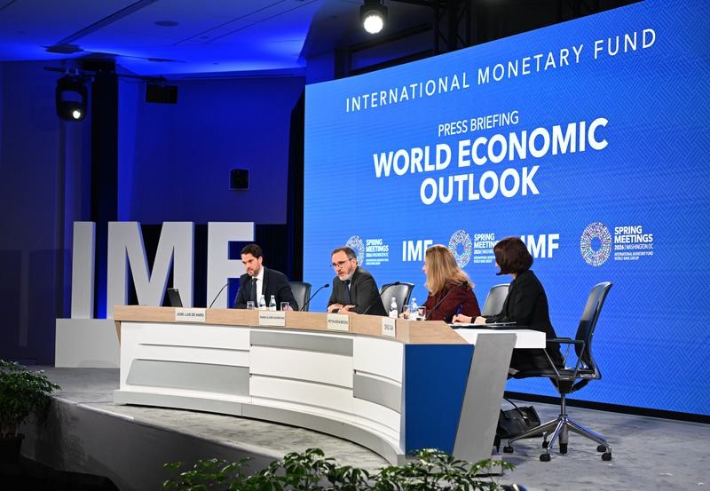 4月14日,在美國華盛頓,最新一期《世界經濟展望報告》新聞發布會現場。圖片來源:新華社 IMF在報告中分析稱,首先,中東緊張局勢可能進一步惡化,甚至演變為現代史上最大的能源危機,或者一些經濟體內國內政治矛盾的導火索。政治壓力因素可能與貿易和其他國際政策的變化交織在一起。其次,即使不考慮中東衝突,貿易爭端也可能爆發。再者,即使生產率有所提高,但對人工智能(AI)利潤預期的重新評估,或因競爭加劇而導致對利潤率預期的降低,都可能導致投資下降,並引發金融市場的突然調整。最後,財政赤字擴大和公共債務增加,尤其是在財政緩衝已被削弱的情況下,可能對長期利率構成壓力,進而影響更廣泛的金融狀況。包括央行獨立性和貨幣政策信譽會受影響,通脹預期可能被推高,尤其是在主要物價受到衝擊導致總體通脹上升之際。 不過,IMF也稱,如果AI的快速普及能够顯著提升生產率、增強商業活力,那麼AI相關投資可能會進一步提振經濟活動,並最終轉化為可持續增長。此外,結構性改革勢頭的恢復以及貿易緊張局勢的持續緩和也可能對經濟活動起到支撐作用。(完) 【編輯:林曉惠】