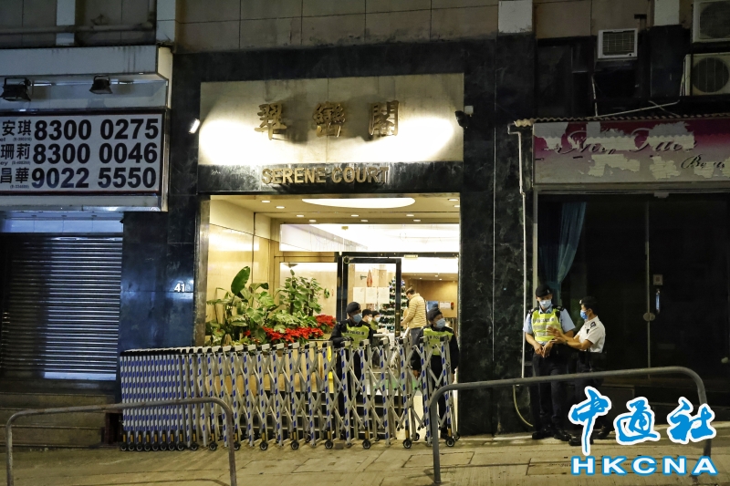 •   1月5日晚,香港特區政府將銅鑼灣天后廟道41號翠巒閣列為指明“受限區域”,對區域內的人士進行強檢,目標在6日上午約6時30分完成此行動。(香港中通社記者 曹文毓攝) 香港中通社圖片