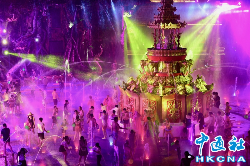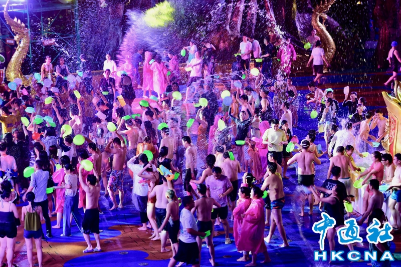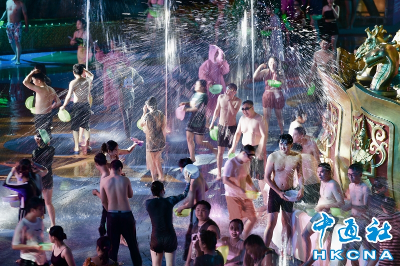 •   7月1日晚,深圳錦綉中華·民俗村第27屆潑水狂歡節開幕。該景區56個民族的兄弟姐妹和游客用吉祥的水花開啟潑水狂歡。(聞子 攝) 香港中通社圖片