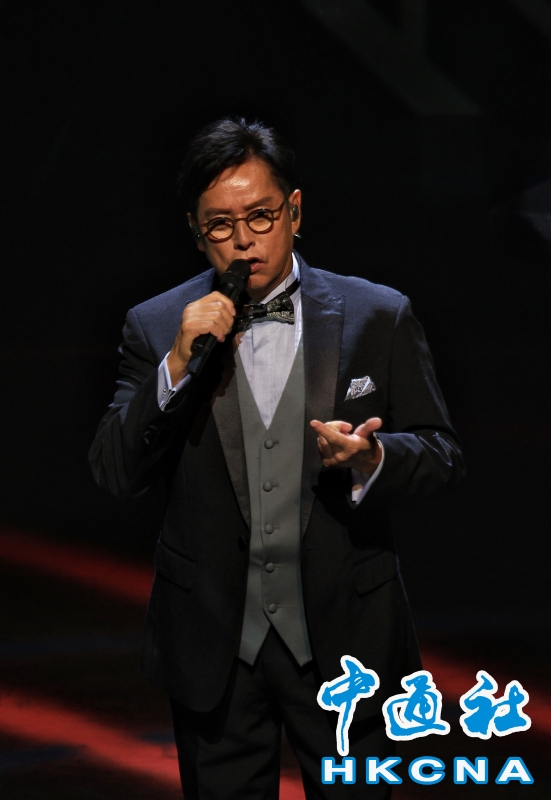 •   為慶祝香港回歸祖國25周年,一場跨界別的大型綜合文藝晚會“鐘聲迴響”7月27日在香港文化中心舉行。圖為著名藝人譚詠麟現身晚會。(香港中通社記者 許其皓攝) 香港中通社圖片