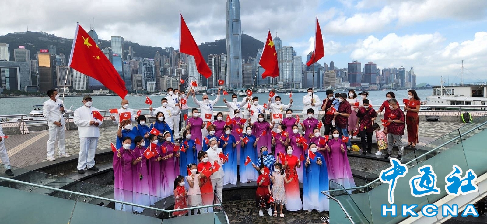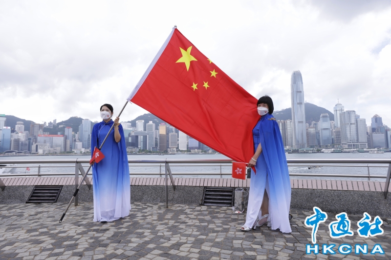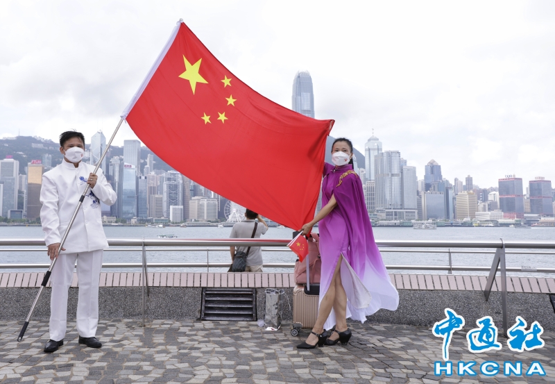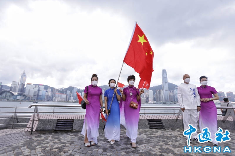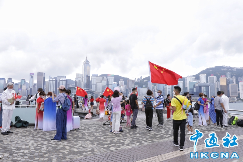 香港市民尖沙咀碼頭快閃賀73周年國慶分享到: