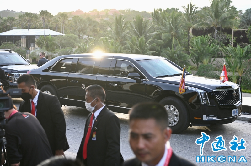 •   11月14日下午,美國總統拜登抵達印尼巴厘島出席二十國集團領導人峰會。圖為美方車隊。 香港中通社圖片