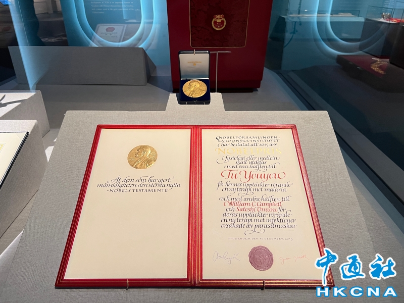 •    “智慧之光——中醫藥文化展”18日在中國國家博物館開幕。圖為屠呦呦獲得諾貝爾生理學或醫學獎的獎章和證書。 香港中通社圖片