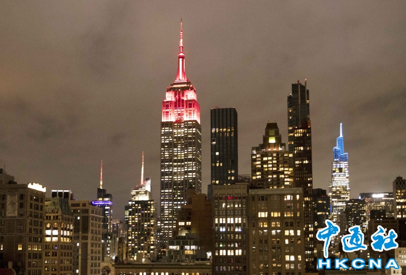 (國際新聞)紐約帝國大廈點亮“中國紅”慶祝中國兔年春節