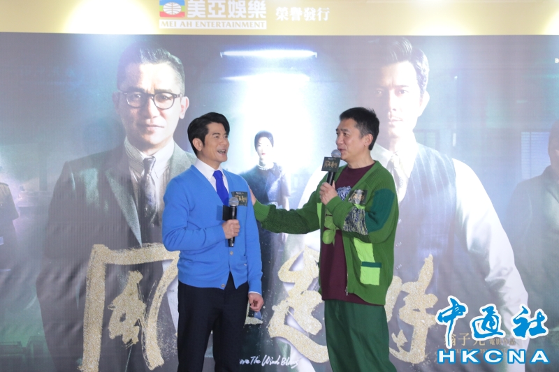 •   香港電影《風再起時 》首映禮於2月7日假尖沙咀一商場舉行。《風再起時》是一部香港史詩式犯罪傳記片,由美亞娛樂及大地電影出品,翁子光導演及編劇。圖為藝人郭富城(左)、梁朝偉分享拍攝感受。(香港中通社記者張海德攝) 香港中通社圖片