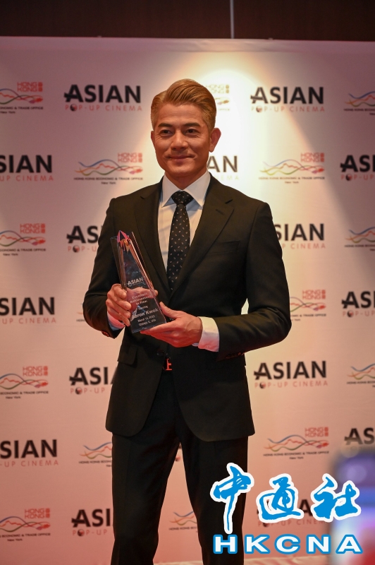 •   香港駐紐約經濟貿易辦事處(香港駐紐約經貿辦)今年3月,為芝加哥第16季亞洲躍動電影節呈獻六部扣人心弦的香港電影。翁子光執導的《風再起時》3月14日(芝加哥時間)在電影節舉行北美首映。香港駐紐約經貿辦在首映前舉辦新春酒會,與中西部地區的朋友一同慶祝佳節,並表揚電影男主角郭富城。圖為郭富城獲芝加哥亞洲躍動電影節頒發“卓越電影成就獎”,表揚他對電影業作出的傑出貢獻。 香港中通社圖片