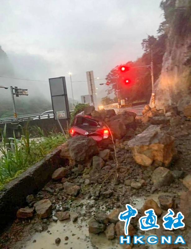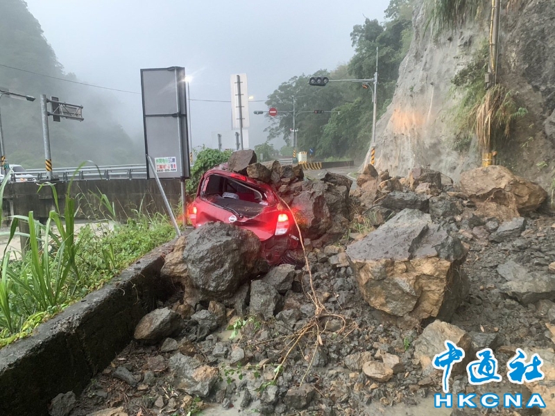春雨襲擊台灣苗栗縣 大湖嚴重落石砸爛轎車分享到: