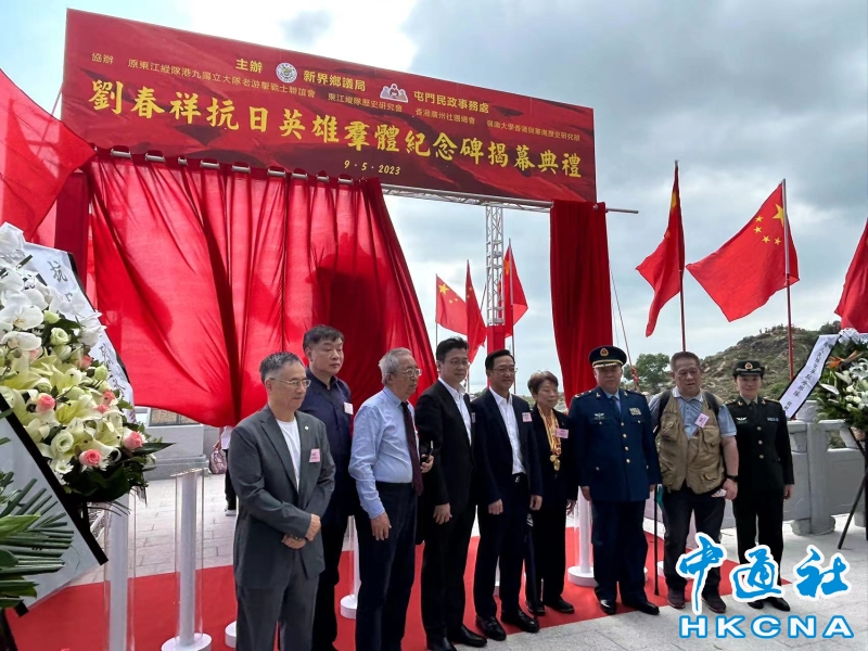 劉春祥抗日英雄群體紀念碑在香港屯門龍鼓灘揭幕