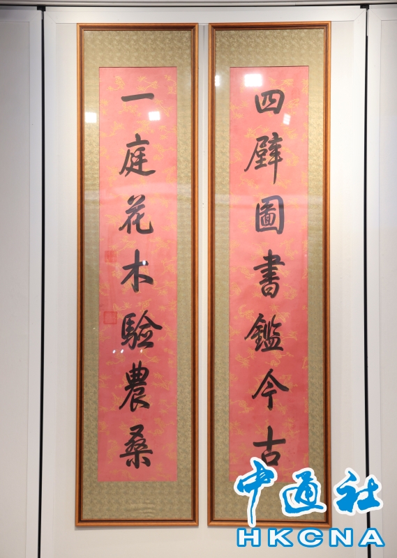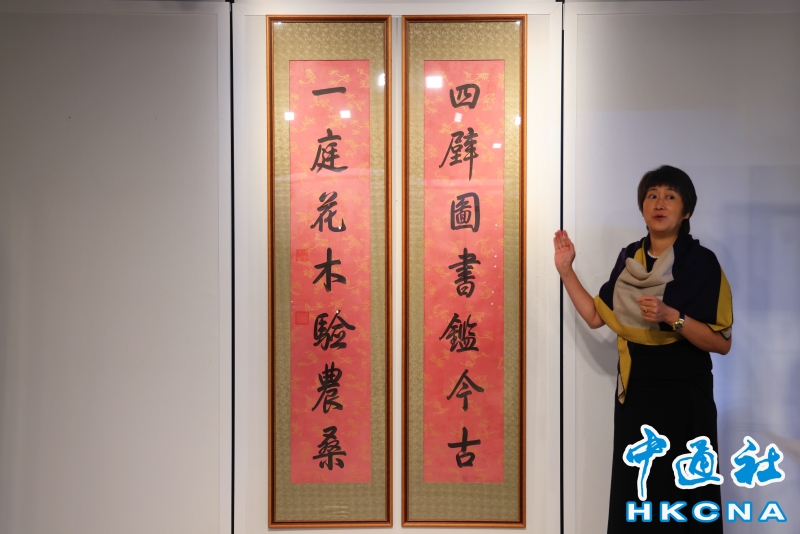•   香港邦瀚斯“中國書畫”拍賣將於6月2日舉槌,呈獻乾隆帝御筆七言聯《御製澄懷堂詩》。是次是這件物華首度公開面世,估價400萬至800萬港元。(香港中通社記者 曹文毓攝) 香港中通社圖片