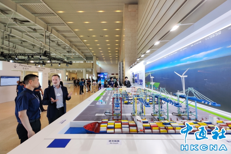 •   6月27日,參會者在天津港展位參觀。當天,第十四屆夏季達沃斯論壇在天津開幕。 香港中通社圖片