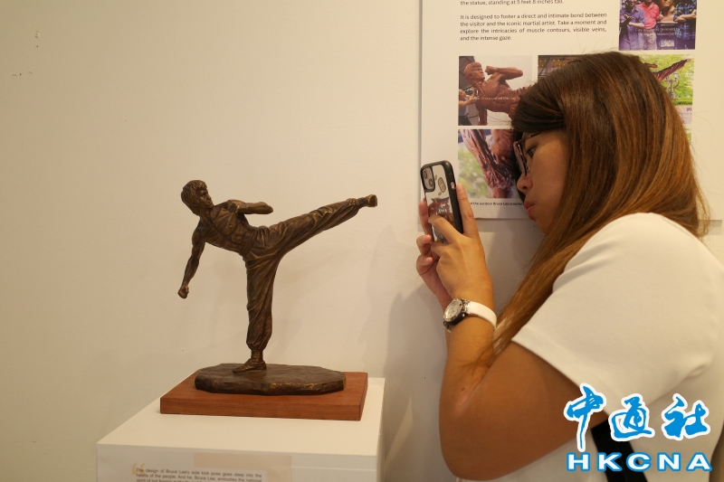 •   當地時間8月3日,作為香港駐多倫多經濟貿易辦事處在加拿大舉辦的“2023香港周”首場活動,“藝道融心——朱達誠藝術作品展”在大多倫多中華文化中心揭幕,展出香港知名雕塑家朱達誠的逾30件雕塑及繪畫等藝術作品。圖為觀眾在朱達誠創作的李小龍雕像前駐足拍照。 香港中通社圖片