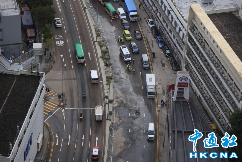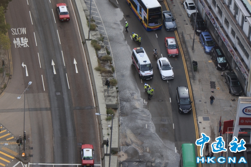 香港黃竹坑道水管爆裂 部分行車線封閉