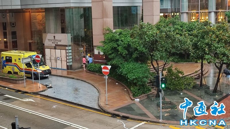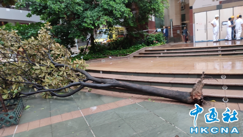 •   9月1日,香港受到台風“蘇拉”影響,下午風勢增強,北角一處發生塌樹,狂風將一顆樹連根拔起。 香港中通社圖片