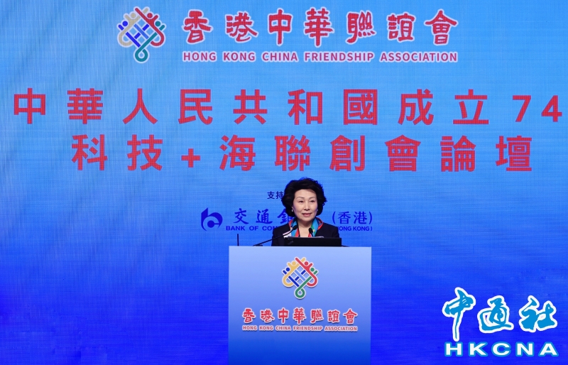 •   10月19日,香港中華聯誼會在香港會展中心舉辦“科技+海聯創會論壇”。圖為香港中華聯誼會會長鄭翔玲致辭。(香港中通社記者 曹文毓攝) 香港中通社圖片