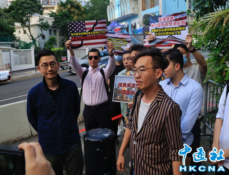 香港青年自發到美國駐港總領事館譴責美國國會跨黨派議員提出法案分享到:
