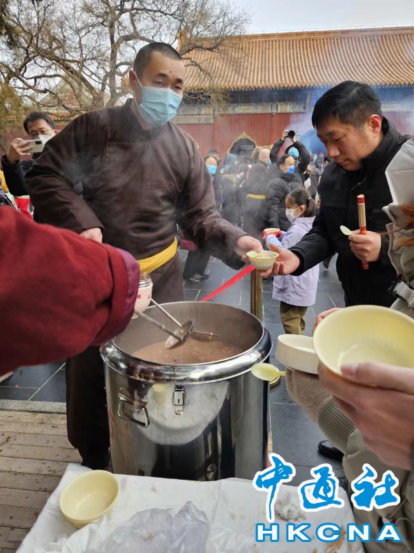 •     2024年1月18日,北京民眾在雍和宮排隊品嘗臘八粥。 香港中通社圖片
