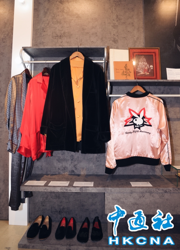 “譜寫傳奇:《花花公子》休·海夫納 x 瑪麗蓮·夢露”將於1月 27日至2月1日在香港中環藝穗會開展,免費展出瑪麗蓮·夢露和《花花公子》創立人休·海夫納的逾50件珍貴藏品。休·海夫納的經典吸煙夾克、絲綢睡衣及拖鞋;花花公子25周年紀念粉紅色飛行員夾克及牌匾。(香港中通社記者 曹文毓攝) 香港中通社圖片