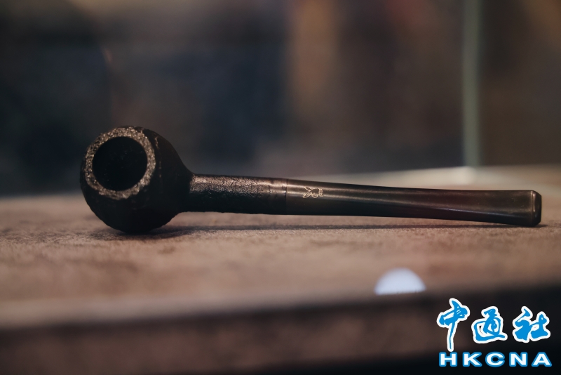 “譜寫傳奇:《花花公子》休·海夫納 x 瑪麗蓮·夢露”將於1月 27日至2月1日在香港中環藝穗會開展,免費展出瑪麗蓮·夢露和《花花公子》創立人休·海夫納的逾50件珍貴藏品。圖爲煙斗。(香港中通社記者 曹文毓攝) 香港中通社圖片