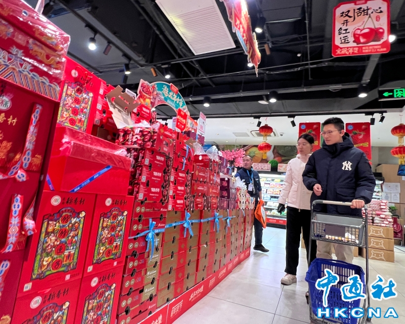 •     北京“年味兒”越來越濃。北京一家超市堆滿新春年貨。 香港中通社圖片