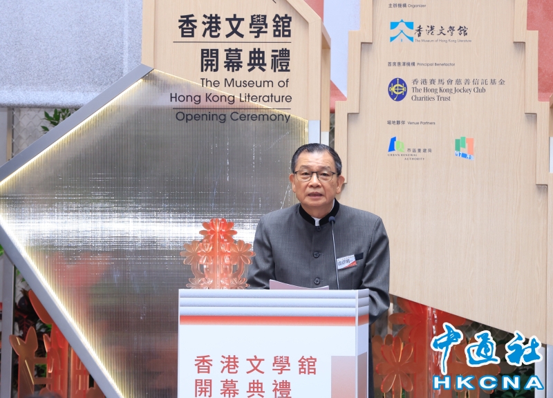 •   歷經香港作家聯會二十年的奔走與疾呼,香港文學舘終在本屆香港特區政府的大力支持,及首席惠澤機構香港賽馬會慈善信託基金的捐助下,於2024年5月27日正式開幕,開幕禮於灣仔茂蘿街七號舉行。圖為香港文學舘舘長潘耀明致辭。(香港中通社記者 曹文毓攝) 香港中通社圖片