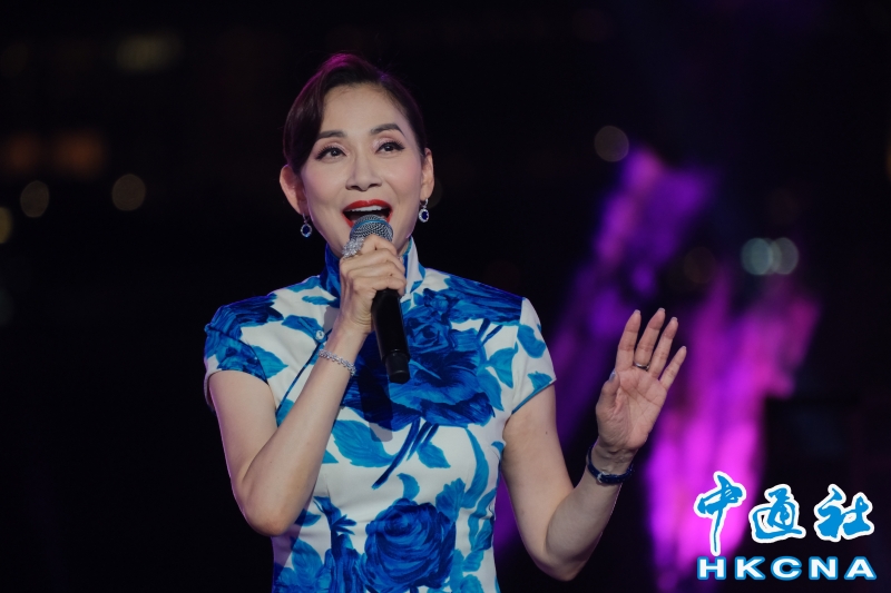 •   9月30日晚,為慶祝中華人民共和國成立75周年,“新生代千人合唱賀國慶”在香港西九文化區舉行。圖為特別表演嘉賓鄺美雲獻唱。(香港中通社記者 許其皓攝) 香港中通社圖片