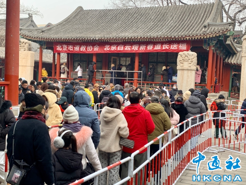 •     1月25日,北京市白雲觀後花園內,民眾正有序排隊,現場接“福”。 香港中通社圖片