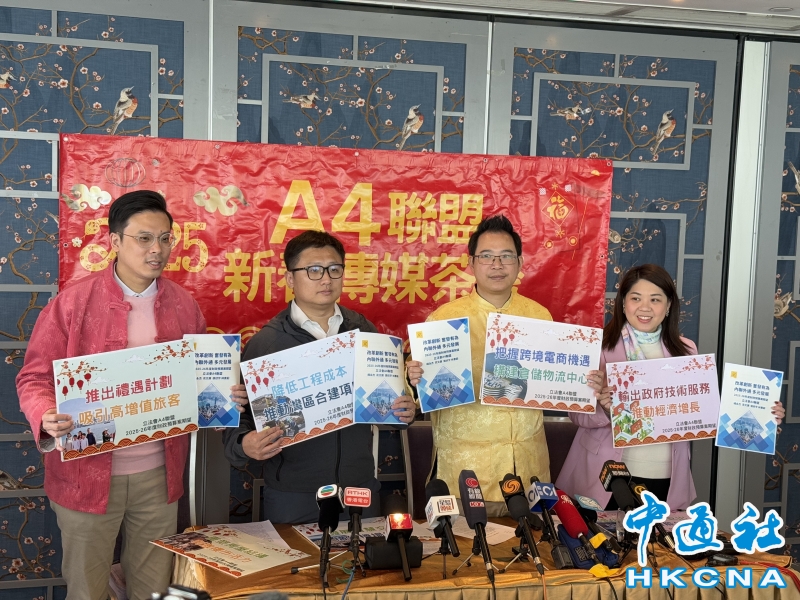 •   香港新一份財政預算案即將發佈,立法會“A4聯盟”楊永杰、梁文廣、張欣宇、林素蔚議員將於2月6日向財政司司長陳茂波提交2025至2026年度財政預算案建議書,內容涵蓋旅遊、樓市、基建等五大範疇。(香港中通社記者 張明臻攝) 香港中通社圖片