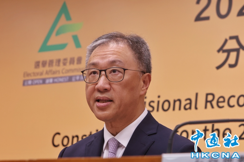 •   5月2日,香港選舉管理委員會舉行記者會,公佈2025年立法會換屆選舉地方選區分界及名稱臨時建議公眾諮詢的詳情。香港立法會換屆選舉將於12月7日舉行。圖為選管會主席陸啟康法官(中)主持記者會。(香港中通社記者  謝光磊 攝) 香港中通社圖片