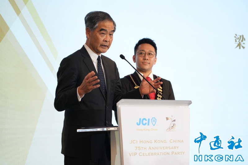 •   國際青年商會中國香港總會 (JCI HK) 5月2日舉行 75 周年慶祝酒會,回顧及展示多年來在培育青年領袖、促進社區發展及推動國際交流方面所取得的成就。圖為全國政協副主席梁振英致辭指出,香港擁有多種功能,能夠促進中外交流,並在經濟、文化等領域發揮關鍵作用。他更鼓勵青商年輕人積極參與,利用香港的獨特地位,推動創新和合作。 香港中通社圖片