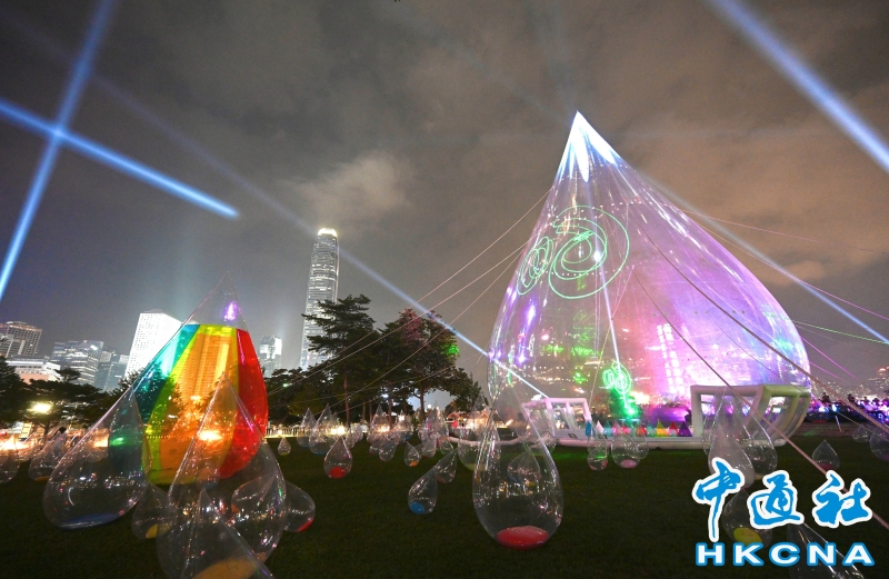 香港“舞動水滴展”展出最大水滴藝術裝置