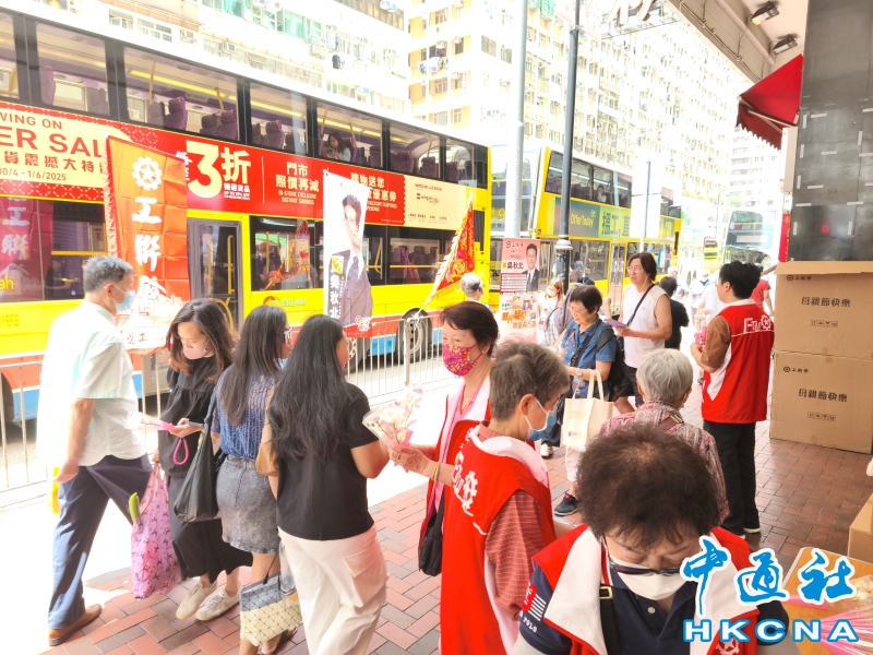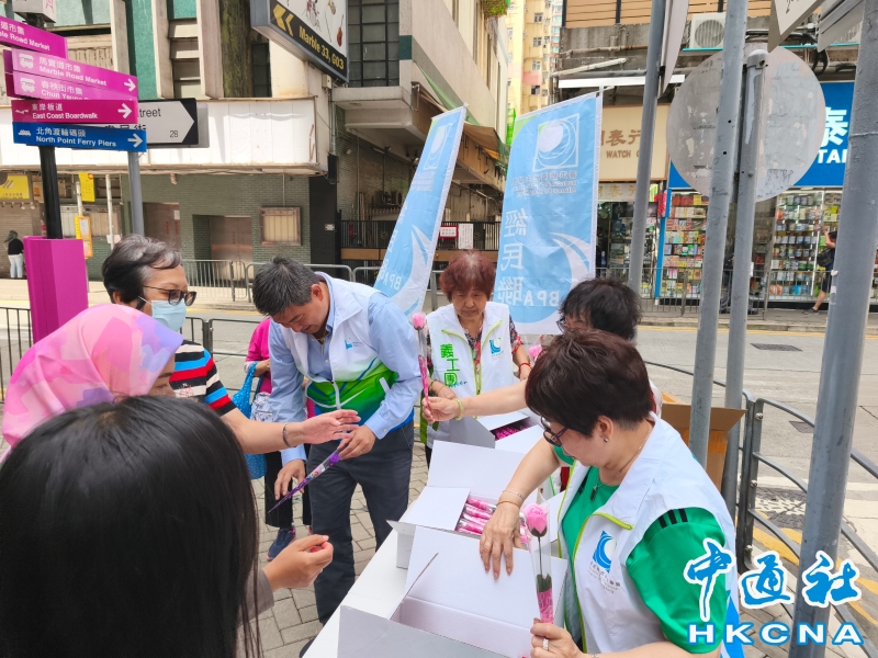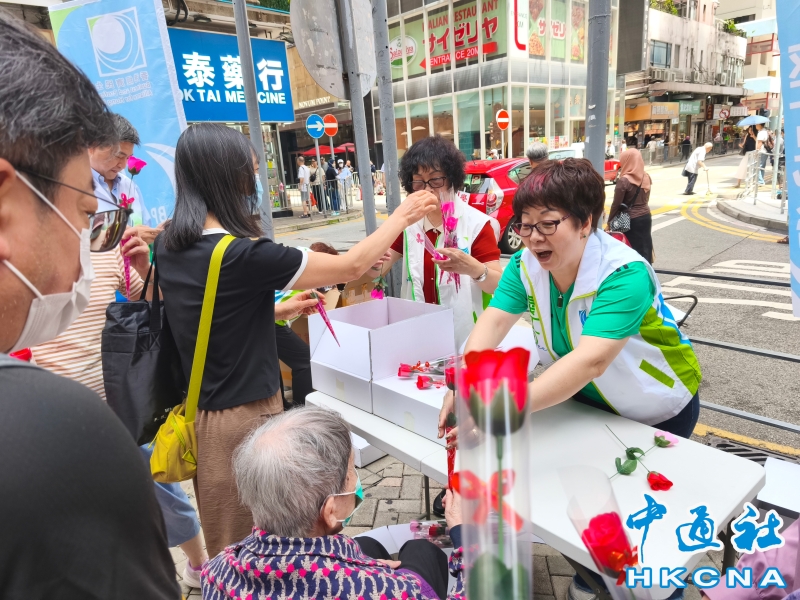 •   5月11日母親節,有政黨團體在街頭向市民派發花束,慶祝母親節。 香港中通社圖片